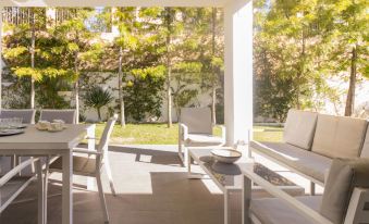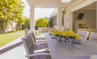 Very nice house with small flaws in cleanliness such as a protected sofa and loungers in the garden. Parking was not available because the driveway was very small and the garage could not be opened. The gardeners bothered us once in the morning at 9:00 wi