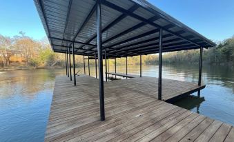 Viewing the lake in the mornings off the outside deck is awesome. Its peaceful and quiet great way to start your day. The dock is perfect if you have a boat. My wife and four kids enjoyed being able to fish off the dock and jumping off out to swim. they had plenty of fun. The cell service is spotty but was to be expected. there is Wi-Fi so that helped. The property has an incline, the driveway to the house is little rough due to the water runoffs, being its just a dirt road to the home. The property is off a county road and going to town is about a 15 min drive if you need supplies or groceries. Alexandra was very responsive and made sure we were comfortable. I would definitely enjoy staying here again, its a nice getaway. We really enjoyed our time there!!