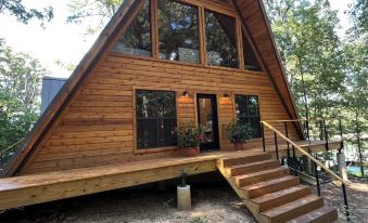 Burning Daylight is what we call our modern and spacious a-frame cabin and that's exactly what you can do here! Relax and burn your days on the large porch with a gorgeous view of Lake Bob Sandlin. There's plenty to do around the property with swimming, fishing, kayaking, playing yard games or exploring the woods. Take a short car ride to scope out the walking trails at the State Park or the cute downtown area of Pittsburg, TX. There is a lovely winery to visit as well as some local restaurants. Vaughn's Catfish and The Cove at the neighboring Cypress Springs Lake are some favorites. If you are feeling very adventurous the Barnwell Off-Road Mountain Recreation Center is calling your name!