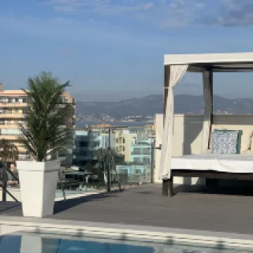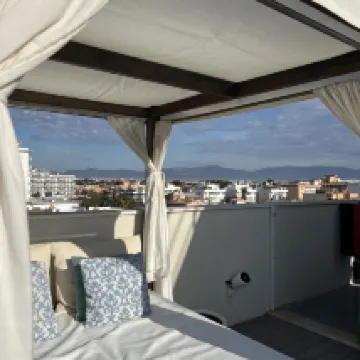 可愛的小酒店,工作人員非常友好。很棒的屋頂酒吧營業至下午 5 點,一個小但風景如畫的屋頂游泳池營業至 8 點。早餐的亮點是糕點,還有少量但很棒的其他選擇,包括燕麥、豆漿和米漿。週邊地區有很多海濱酒吧和餐館,海灘非常乾淨。總的來說,我們住得很愉快,淋浴很棒,我不想出去。