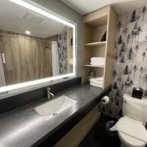 酒店位於班芙公園的東邊,距離班芙小鎮大約24公里。是在班芙公園的外邊,需要進出班芙公園,有公園年票更方便哈。酒店房間較大,有咖啡和飲用水,前台有微波爐。