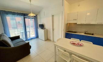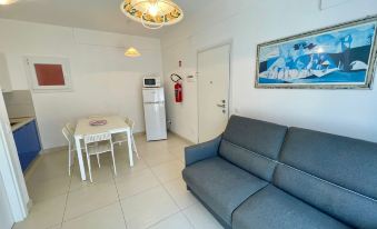 Functional flat for up to 6 guests, located on the first floor of a one-storey house without lift, only 240mt from the beach. It is composed of a living room with a double sofa bed, a kitchenette, a spacious balcony, a bedroom with a double bed, a second bedroom with two single beds, and a full bathroom with a shower box. One uncovered parking spot is included. There's a shared laundry room for the whole residence. A/C is available at an additional cost (check below).°Photos are generic and representative of the accommodation type (furniture, décor and colors may vary)