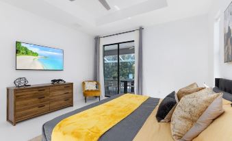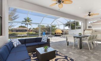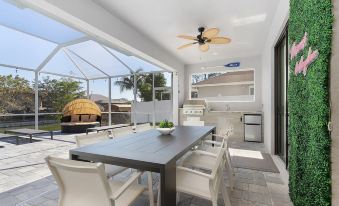 在寬敞的私人露台上盡情享受佛羅里達陽光明媚的天氣。在恆溫鹹水泳池中暢遊一番後,您可以在池畔的休息區放鬆身心,而燒烤大師則在戶外廚房準備美味的後院燒烤。您還可以在可容納八人的戶外餐桌上享用戶外餐點。如果您想享受特別的犒勞,可以前往運河前的觀景碼頭沐浴陽光,或在水邊享受片刻寧靜。想挑戰一下釣魚嗎?拿起魚竿,釣上你的下一條大魚吧!