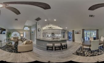 You will never want to go home after spending some time here.. This home has been completely remodeled with open floor plan. Back of home is lined with pocket sliders to open up the main living area and master bedroom. Bright open kitchen fully stocked for anything you might want to make. Kurig coffee maker - toaster- mixer etc. Master is large and also has a sitting room with a sleeper sofa. Large lanai area gives you plenty of options for enjoying the outdoor fresh air. Heated pool that also has just been updated will cool you off on those hot days and on cold days will be warm enough to take a dip. The beds are comfy with plenty of extra blankets. Tv's in master and living room. 2 car garage with beach chairs and cooler for your beach days. Everything you need to have a amazing vacation. No need to bring anything but yourself and your personal items. Close to shopping, Sunsplash, beaches and anything you would like to do to make your vacation memorable. Spend your time here and you won't be disappointed.About pets:No pets allowed.About checkOut:Check out before 10:00 AM.About children:Children allowed: ages 0-17.About checkIn:Check in after 4:00 PM.About smoking:Smoking is not permitted.About minBookingAge:Minimum age to rent: 21.About events:No events allowed.