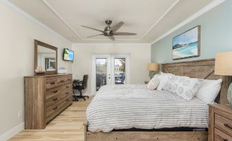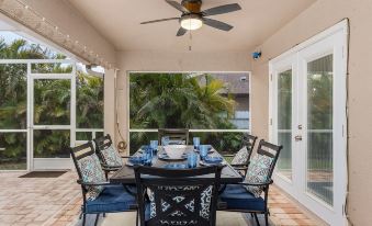 The real highlight of this vacation rental is the outdoor space. Take a dip in the heated pool and spa, surrounded by plenty of seating and loungers. Cook up a delicious meal on the grill and enjoy it on the dining set that seats 6 guests, all while enjoying beautiful views of the canal. The canal is perfect for fishing, and fishing gear is provided in the garage for your convenience.