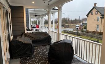 This newly constructed townhome provides all of the modern comforts in the middle of the Historic District of Cape May (within walking distance of the downtown and the beaches). The 2400+ sq. ft. unit includes 4 bedrooms (each with their own private bathroom), an elevator, full-sized washer & dryer, 2 car garage (plus 2 add. parking spots), 3 porches, and an outdoor shower. The house has full 4K cable and Wi-Fi and the kitchen includes a Viking gas range, dishwasher, a two refrigerators.About pets:No pets allowed.About checkOut:Check out before 11:00 AM.About children:Children allowed: ages 0-17.About checkIn:Check in after 4:00 PM.About smoking:Smoking is not permitted.About minBookingAge:Minimum age to rent: 21.About events:No events allowed.