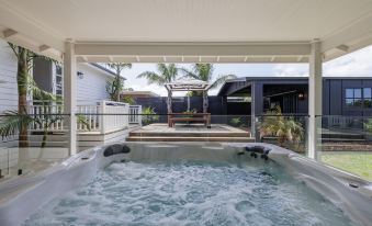 Spa jacuzzi, modern, stylish, separate games room, backyard, fully fenced