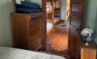 Bedrooms off the kitchen include a large "Bunk Room" with 2 sets of bunkbeds. Two private bedrooms each have queen size beds. There is also queen-size pull-out sofa bed int the living room and a twin air mattress available. Linens and towels are provided.