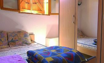 3-room apartment, first or second floor, with balcony and sea view, approx. 57 sqm: living/dining room with double sofa bed and kitchenette (electric hotplates, fridge with freezer compartment, microwave). A double bedroom, 1 bedroom with two beds or bunk beds. Bathroom with shower.