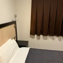 There was some sort of dirty liquid all over the wall. The bed was rock hard and two full sizes pushed together. There was AC in the room and a full size bathroom which was nice. There is no one at the front desk until 3 and they leave at 10, so checking in has a very limited window, especially if you plan on going to Barcelona the same day. It’s not the closest to the city but for staying one night waiting for a flight it was just alright.