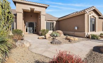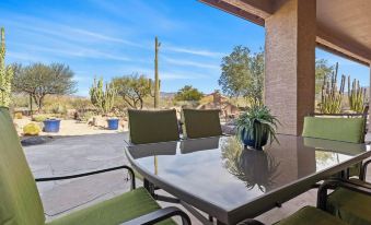 This 4-bedroom house in Cave Creek is perfect for your escape. With 1 king-size sleep number bed , 1 futon, and 3 queen Beauty rest beds, this property offers a variety of sleeping arrangements. The 3 bathrooms feature a bathtub, shower, and jetted bathtub for your relaxation. The living room is spacious, with recliners, a leather sofa, huge TV, and an extra room with a king-size sleep number bed for comfort. The kitchen and dining areas provide plenty of space to gather, while the cozy fireplace adds warmth and charm. Step outside to expansive patios surrounded by stunning desert landscapes and unique cacti. Relax in the outdoor seating areas while soaking in breath taking views of Elephant Mountain and rugged beauty of the Sonoran Desert. This retreat is ideal for guests looking to unwind. Feel free to reach out to us during your stay - we're happy to suggest local spots to check out.About pets:Pets allowed: dogs and cats less than 50 lbs per pet (limit 2 pets total).About children:Children allowed: ages 0-17.About smoking:Smoking is not permitted.About events:No events allowed.