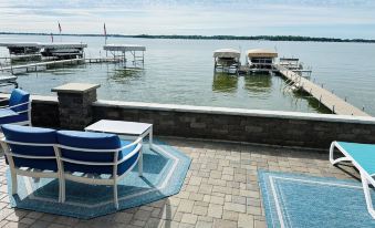 On The Lake! Hot Tub! Private Dock! Enjoy time in the Hot Tub overlooking the lake. Newly remodeled! FIVE bedroom/3 bathroom house on the lake. Great location on North Shore Drive, fully furnished, including linens. All you need to bring is your food and clothes. Spend evenings in the hot tub or around the outdoor gas fireplace. TVs in all bedrooms. Washer & Dryer - 2 Kayaks for your pleasure. A bicycle built for two and three other bikes, including a Burley for the beautiful bike trail nearby. Veteran's Memorial Golf Course is less than a mile away. Treat your family to the best!