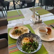 酒店離機場很近有免費的接送機服務 前台tracy歡歡很熱情 給人一種愉快的氛圍 早餐也很豐盛哦