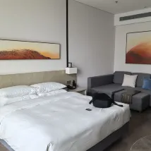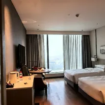 房間寬敞,服務優秀。還送了安檢快速通道。特別棒的是空調的最小檔能夠達到幾乎沒有聲音的地步,這在其他同等或者更高檔次的酒店都沒有體驗過。早餐很豐富!也不是説不乾淨,就是漱口水杯能夠清洗得更加徹底,沒有水漬就完美了。