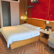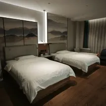 帶家人一起出去旅遊,加錢升級雙床房,床很大,睡的很舒服,隔音效果很不錯,窗外風景很漂亮,前台小姐姐服務特別熱情,房間衞生不錯,貼心送了小朋友小禮品,推薦