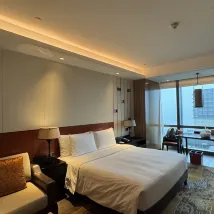 此次下榻長沙君悦酒店,其全方位的卓越體驗遠超預期,尤為值得一提的是賓客服務中心的員工,她們服務十分熱情,體貼入微,無論諮詢何事都能得到耐心且迅速的迴應,為整個入住體驗奠定了温馨的基調。此外,離店時開票迅速、流程規範,為匆忙的行程節省了寶貴時間,這份高效令人讚賞。 酒店的地理位置得天獨厚,與網紅打卡地太平老街真正是步行可達的距離,僅需過個馬路,便能從靜謐的奢華空間瞬間置身於熱鬧的市井煙火中,品嚐地道小吃,感受老長沙的韻味,便利性無與倫比。 我入住的高級江景雙床房更是此行的高光時刻。房間內部環境優雅整潔,設施維護得如同全新。而最令人沉醉的,便是那無比開闊的江景視野,整面落地窗將湘江與城際線的美景盡收眼底,無論是白日的水天一色,還是夜晚的燈火輝煌,都美得讓人屏息。 長沙君悦酒店不僅擁有絕佳的位置、開闊的江景和優雅的環境,更以賓至如歸的真誠服務(特別是賓客服務中心和高效的開票體驗)深深打動了我,無疑是重遊長沙時的唯一選擇。