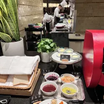來長沙前一直在尼依格羅和君悦之間糾結,綜合考慮後,還是依然再次選擇了君悦。 首先,酒店地理位置優越,穿過馬路對面就是湘江,晚上漫步江邊,兩岸高樓的燈光秀此起彼伏,絢麗多彩。湘江中心的橘子洲頭風光帶也是燈光點點,一直延伸到盡頭,映照在敬愛的毛主席的雕像處。 另外,從酒店所在的海信廣場可以直接穿到網紅打卡點“超級文和友”,裏面還原了中國九十年代的場景,不僅拍照出片,還有各種長沙特色小吃,衹是感覺味道已經不如從前了,性價比也不高。 最後,繁華的坡子街和黃興街也在附近,再逛一逛國金,美食購物非常便利。當然,不足之處就是酒店離地鐵站有些遠,對於長者入住有些不方便。 感謝嘉賓軒的美女經理嚴詩詩,幫忙安排了心儀的高層房間,還貼心地幫忙多放了幾張摺疊椅。客房內寬敞明亮,佈局合理,最喜歡的是那一整面的落地窗,窗外江景無敵,橘子洲頭的風光也是一覽無遺。衣帽間也很寬大,兩個大理石台可以放置足夠多行李,有三處掛衣桿,方便客人分區懸掛衣物。原木傢俱做工考究,經得住歲月的考驗。衹是客房服務還有進步的空間,送東西的速度有些慢,而且第一晚沒有開夜床,打電話給賓客服務中心,第一反應不是自察,而是詢問客人有沒有按“請勿打擾”,還提出是不是後續打掃房間和開夜床在一起進行,真是有點搞不懂。但不管怎樣,第二天是有所改進的。 嘉賓軒的小姐姐們非常熱情,服務也很周到。行政酒廊的下午茶比較簡單,提供一些餅乾、蛋糕、水果等。傍晚的歡樂時光不錯,除了現做的長沙特色粉面,還有廚師特別烹製的位上菜,印象深刻的是烤羊排,鮮嫩多汁、濃香入味,自助部分有熱菜、壽司等,菜色每天也有變化更新。特別喜歡君悦的甜品,小蛋糕精緻可口、入口即化。 一樓的自助早餐也很亮眼,種類豐富、品種多樣,有辣椒炒肉米粉、糖油粑粑、糖餃子、葱油粑粑、臭豆腐、米豆腐、麻油豬血……各種長沙地道小吃,讓人眼花繚亂、大飽口福。尤其是自製的大肉包,皮薄餡靚,一口爆汁。除了傳統美食,煎蛋檔還會給客人制作“班尼迪克蛋”,不過對比其它五星級酒店還是略遜一籌,感覺少了一些醬汁,下面的麪包有點幹。西點檔的麪包和蛋糕很美味,還提供各種調味醬,居然有黑松露蜂蜜,兒子很喜歡。 衹是有些餐廳服務員還不夠熱情,不會主動問候客人,也不會引導帶位,沒有茶水的服務,收碟也不夠積極,如果能學習一下嘉賓軒的服務就更完美了。 不過,總體而言,這次的入住,我和家人還是非常滿意的,期待下次的相遇!