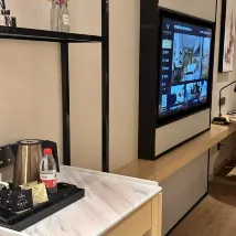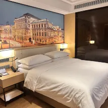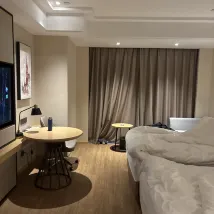 房間佈置得温馨雅緻,床品柔軟舒適,睡在上面就像被雲朵包裹着,一夜好眠。浴室乾淨整潔,熱水供應穩定,水温恰到好處。房間裏的設施也很齊全,有智能電視、小冰箱,還有高速的無線網絡,完全滿足了我的需求。
