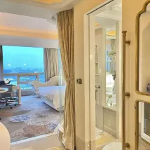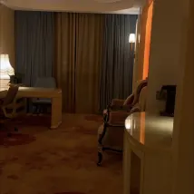 客房相當豪華,打掃得非常乾淨,看得出來很用心裝修和維護了。但是發生的小插曲讓人很不爽,前台巨忙,12點快要退房的這個檔口,竟然衹有一位工作人員,其他崗位🈳。導致我們拿着兩張卡退房都不帶搭理,衹好給旁邊負責自助機器的工作人員,但是不知道為啥,兩張卡最後兩點半上高鐵了也沒退,酒店打電話來問要不要續住?!按金還要等,這種混亂的管理局面,配不上這麼好的酒店,半顆星都不想給。