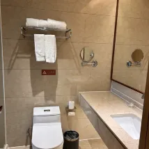1、衞生:地毯臟兮兮,沙發臟兮兮,坐墊臟兮兮。 2、設施:面巾紙薄如蟬翼,浴巾破破爛爛,wifi時斷時續,若有若無。 3、早餐:是38元的標準,但是品種很少,跟別的酒店10元標準差不多。