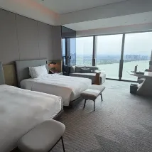 酒店樓有近40層,酒店房間在32-40層,大堂進去感覺還比較開闊明亮的,前台是獨立櫃枱式.房間設施挺新的,設計也挺現代商務,符合最新推出的摩登商旅概念. 總體服務都不錯的,大門的禮賓員熱情幫忙開車門和提行李,前台JiaJia也能迅速響應提出的問題. 下次有機會還會選擇. 這次還幫忙了升級房型,整體感覺很好哦