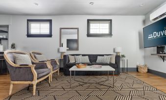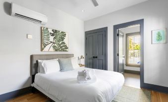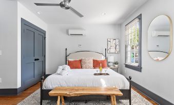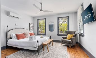 This 4 bedroom, 4 bathroom unit in a home is professionally designed under one roof. There is a fully-equipped kitchen with brand new appliances, cabinets and all the dishes and glasses guests need along with cooking items. The living room has a dining table that can seat 4-6 guests, a Queen size pull-out sofa and flat-screen 4KTV. The unit has four bedrooms, one King bed and three Queen beds, all with luxury linens and flat-screen TVs. The four full bathrooms feature custom tile, stall showers, luxury towels and hotel style toiletries. There is a wonderful porch with seating and a private, walled backyard with beautiful landscaping. Our driveway can accommodate a mid-size vehicle for parking. We are two blocks to King Street! Guests can enjoy complimentary Cable & WIFI along with complimentary concierge services.