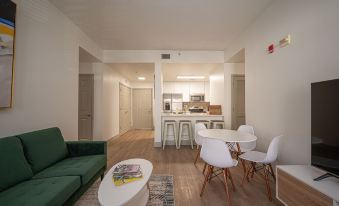 Unique and rare, this three (3) bedroom, two (2) full bath apartment has eight (8) beds to accommodate up to eight guests.