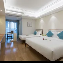 已經是第四次來成都了,沒想到這一次是我住的最滿意的。首先前台免費給升級了房間,其次就是房間的設施非常齊全,小冰箱、洗衣機、微波爐等都非常全。服務更是沒問題,前台、打掃房間的、站在門口的等都是全程微笑服務👍👍👍,必需給5星好評。衞生乾淨整潔,環境舒適,給人的感覺就和家一樣。現在正是旅遊旺季,房間的價格也是非常優惠的,這一次的感覺太棒了,下次再來成都一定還會再訂的,強烈推薦。