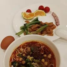 設施:淋浴設施看着還是比較新的,洗臉池有點老舊,雖然有洗衣機但是放在開放陽台有點積灰就沒用了。整個酒店衹有三部電梯太少了,早餐時間等了三部電梯都是滿人,節假日一定要先坐上去再下去不然很難坐上電梯… 衞生:進房間第一眼還是覺得比較乾淨的,淋浴間地面也很乾凈。但是門口衣櫃內應該都沒打開檢查,朋友打開的時候被門上看着像假睫毛的東西(以為是蜘蛛)嚇了一跳,我放在衣櫃內的浴巾第二天也沒收走 早餐煮的粉蠻好吃的,兩天水果都是橙子跟小番茄比較單一,總體還不錯吧