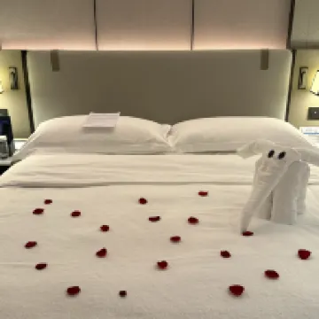 房間非常滿意!因為知道這次預訂房間是為了慶祝生日,管家小黃Cassie非常好心的幫忙升級了房型、安排佈置了房間以及送了份蛋糕!還在得知我需要佈置房間的時候,提前安排了打掃房間。最後因下午安排想要延遲退房、也幫忙滿足了。 入住的時候感覺環境很好,床品睡着也很棒、也沒有噪音,推薦!
