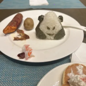 給前台小哥哥點贊,服務好 給樓層服務人員點贊,響應及時 給餐廳服務人員點贊,一不小心撒了牛奶,第一時間清理,對了,熊貓飯糰有點醜 給泡澡水點贊,出來七八天,第一次泡澡水這麼熱乎