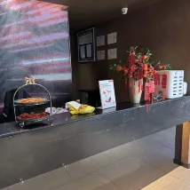 前台服務如沐春風,微笑問好很親切,周邊環境和交通也特別好很方便。大堂還有茶水和桔子可以吃nice(。•̀ᴗ-)