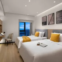 很滿意的一家酒店公寓,很新很周到。服務品質和硬件設施都很到位。服務員個個認真負責,雖然離市區有點遠但是周邊配套很完善,餐飲和商業也很發達,是個很好的選擇。今天Lucy還給我贈送了三份早餐,因為攜程的積分兑換早餐衹有一天的預訂是沒太注意,是個有愛心又大氣的美女。祝酒店生意興隆,下次再來住!