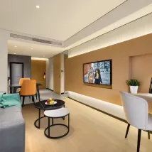 這間酒店房價比較合適,適合出差要求,同時,也可作為家庭自由行的第一選擇。房間配置齊全,大冰箱,微波爐,加熱電磁爐。客廳,飯廳,功能區域很合理。沙發舒服餐桌正好能放下一桌外賣。 周邊有一家不錯的火鍋店。酒店還提供每日自助咖啡,天氣熱還有檸檬水,銀耳羹。在這裏非常滿意。