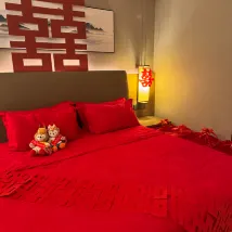前台的菊麗很周到給房間換了喜被,隨便佈置下就很出片,就在市中心去哪兒都方便,整體居住體驗感很好,很推薦!