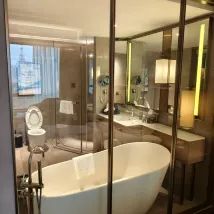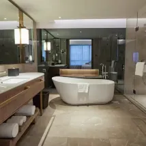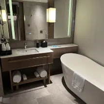 酒店很大氣, 房間很舒適, 洗漱用品很不錯,值得一讚的是沐浴露、洗髮膏、護髮素、潤膚露瓶上的小心思,有個大大的沐、 洗、護、潤,對我們有老化的顧客非常友好。大堂副理小蔣服務很好 ,家樂服務很熱情,行李幫忙送房間 。房間還有水果呢,值得推薦 。