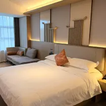 酒店房間乾淨整潔,床品舒適,隔音效果好,睡得很踏實。前台小周辦理入住很熱情免費升級房型,贈送早餐,早餐豐富多樣,周邊配套設施完善。交通購物方便,強烈推薦,下次還會選擇入住!