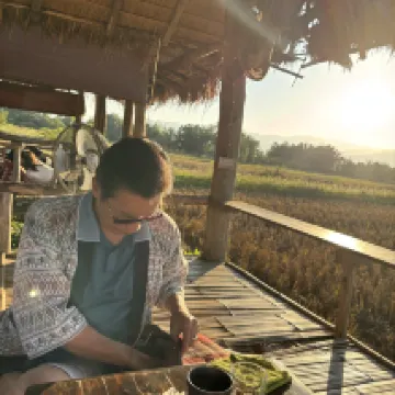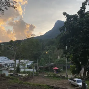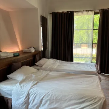住宿緊鄰主幹道。 Doi Luang 的景色清晰,床很舒服,我想抱怨一下浴室的門卡住了,很難關上。床頭沒有充電的電源插頭。有一個插頭很低,離床很遠。我想在床頭兩側添加電源插座,那就太好了。