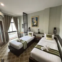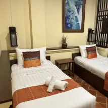 酒店位於古城內,靠近清邁門,屬於古城靠邊位置,但離古城十字主乾道很近,去哪都很方便。酒店是一座獨幢3層泰式小樓,比較新、保養得宜,外觀給人的第一感覺很棒。房間比圖片感覺更大(我住的是201),有獨立陽台,泰式木家具令人覺得安心自在,就象在自己家里一樣。家電都是日本松下,空調給力,也不吵,浴室大小合適,洗手盆和沐浴花灑都非常好用,去水也特別流暢。酒店有提供沐浴洗髮用品(但不提供牙刷),如果要求比較高的,可以自己帶備。樓下大堂等都乾乾淨淨,整整齊齊,工作人員態度不錯,所以是一家性價比非常高的酒店,值得大力推介。