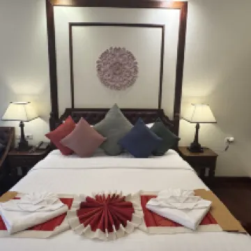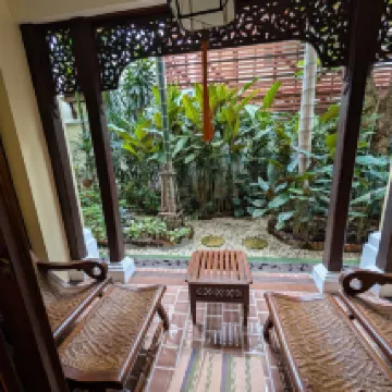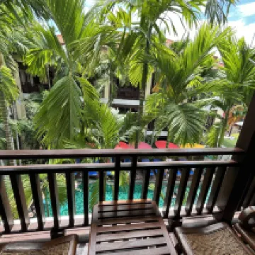 酒店位於古城裡麪小巷深處 鬧中取靜出入也是非常方便,就在契迪龍寺斜對面的巷子裏。 房間很漂亮屬泰式風格,很有質感,面積很大,住着很舒服。有個大陽台,可以靠在藤椅上乘風涼看外面的風景。就是地板太滑了 走路得小心👀 我超喜歡酒店的游泳池 池子不大但很乾凈 唯一缺點就是早上得10點過後才能使用 想必酒店怕吵到住店客人吧。 早餐菜式雖少但也夠早餐了.
