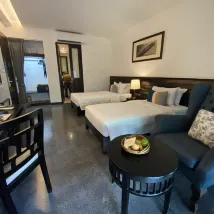 衞生:挺乾淨的,院子和房間衞生都很乾凈,保養得很好 環境:有特色,有風格,有小院子,最喜歡坐在院子裏面看書了,早起有鳥叫聲 服務:工作人員服務態度很好 唯一比較大的缺陷是早餐真的不好吃,不適合我的中國胃,還有隔音效果很一般可以聽到樓上的咳嗽跟走動聲音,但是因為在小巷子裏面整體是比較安靜的,我們定的價格是900一晚的三人間兩個人入住,因為定的時候沒房了,感覺比平時貴很多了