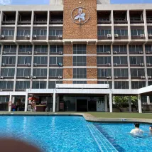 飯店位置還不錯,但因為是老飯店了,所以有點年代感,游泳池很大,水最深有2.6米。附近有很多餐廳,也有便利店。