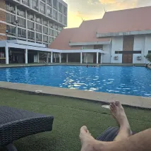 位置方便,離機場不遠,就4.5公里,打車150-200泰銖,公交車50一人。帶早的房費貴點,不帶早餐提前兩月訂,不到兩百塊一晚。游泳池非常漂亮,深水區有2.6米8-7點開放。離古城和新城都很近。