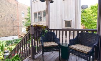 You won’t believe that you’re in Chicago when you see this beautifully renovated 1890’s coach house. Here a quiet tree-lined street and a verdant urban garden welcome you home to Bucktown House. This rental includes both the first and second floor units, so it’s perfect for a large gathering or multiple families. Each 2 bedroom, 1 bath apartment sleeps 5 guests, and there is an interior hallway connecting the two. If you’d like to rent an individual unit, please contact us.