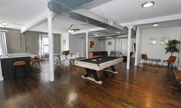 Designed with the traveler in mind, this three bedroom Suite (Sleeps 10) caters all your needs in a modern, spacious layout with metropolitan art-decor that gives this suite a sophisticated edge. The State Suite is thriving with downtown vibes. These suite offer guest a modern space with custom comforts that are a cut above the usual Vrbo experience. Each room is uniquely designed to its own stylish accents and convenient amenities to give you the perfect mixture of home and away. At the premium status level, our suite provides you with a premiere experience in a premiere city.