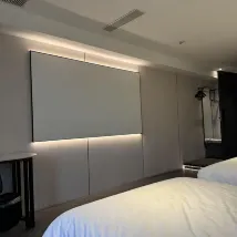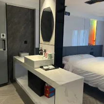 房間乾淨整潔,設施一應俱全,床品柔軟舒適,一覺睡到天亮。房間裝飾我很喜歡,很有設計感,氛圍温馨,每個環節都處理得非常到位。每個細節都做的很nice,員工禮貌熱情,感覺心裏暖暖的。房間寬敞明亮,設施齊全新穎,讓人住得舒心。