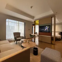 訂的套房,兩個成人帶一個長者,房間寬敞,要求加洗手用品和被子也很及時。早餐品類豐富,酒店離地鐵站較近,到各個景點方便,但是酒店附近沒有太多遊客,比較安靜。