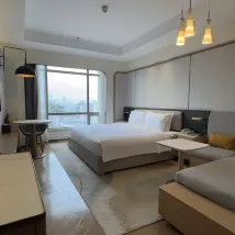 非常滿意,非常好地理位置也很好。嗯這個地理位置呢,離地鐵口衹有幾百米,然後離高鐵站什麼都很近,時間上完全來得及而且這附近吃逛什麼都很方便總的來説是非常推薦的。