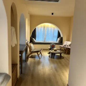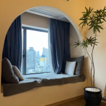 在訂房網上看到這間真的一眼愛上 圖片跟房間真的一模一樣 超温馨漂亮的 尤其是那飄窗完全就是夢中情房啊!! 房間寬敞明亮,床品乾淨親膚,隔音效果超級棒 前台工作人員態度很熱情,還有小管家的服務,有什麼需求很快就會響應! 位置也離觀音橋很近,走路5分鐘就是商場,交通餐飲都很方便,這絕對是最棒的住宿體驗💙💙