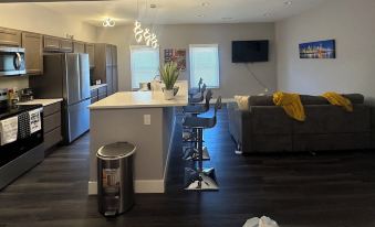Our apartment features a luxurious King Bed in the master bedroom, ensuring a restful night's sleep. The second bedroom offers the flexibility of a Queen and Full-size bed, making it ideal for families or groups. Additionally, a comfortable sleeper sofa in the living area provides extra accommodations for guests. The open-concept layout is tastefully decorated and brimming with thoughtful touches that make it feel like your home away from home.